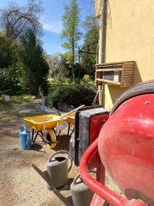 Merci à la classe de BPA TAP du CFPPA encadrée par Matthieu Rentz, pour la réalisation de cette jolie terrasse sous la glycine.